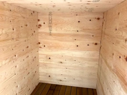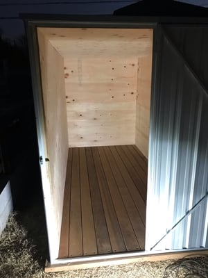 内部には雪害対策の木製梁と柱をセットして、さらにコンパネを内張りしました。