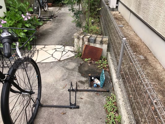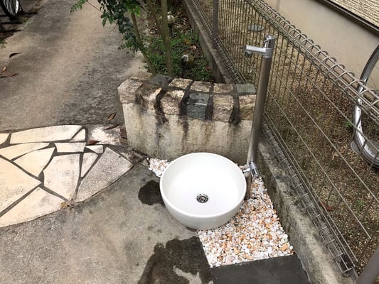 また、駐車スペースの散水栓をジラーレWヘアラインに取り替えて陶器製パンも設置しました。