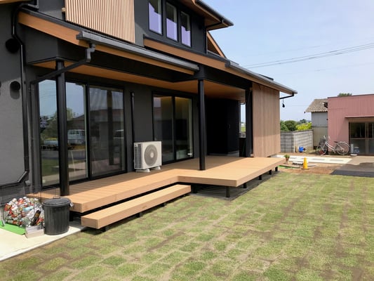 庇の長い家にはウッドデッキが似合います 千葉県野田市