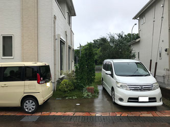 広いお庭にはカヤ(イネ科の強い雑草)が広がり、駐車もしずらい作りだったので、収納と遊べるお庭及び2台置ける駐車スペースを中心にリフォームしました。