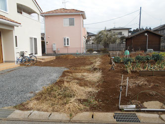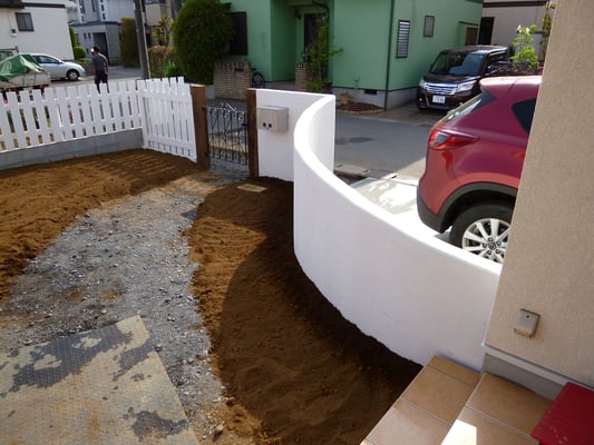 アプローチレンガ敷きや植栽はお客様が楽しみながら進めて行かれる予定です。