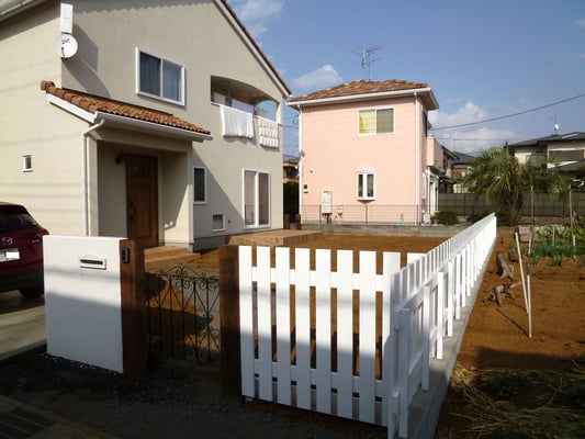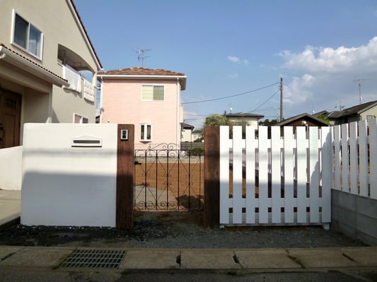アンティークゲートと白いピケットフェンス 千葉県野田市 外構工事 エクステリア工事