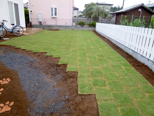 新築で広い敷地の外構ガーデン工事でしたが、スタートはTM9芝とアンティークゲートのご相談からでした。