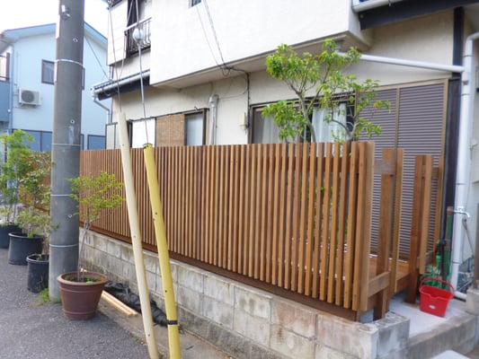 ウリン材で創った、風が通るたて格子フェンス 春日部市 外構・エクステリア・造園