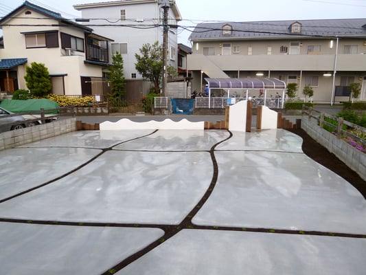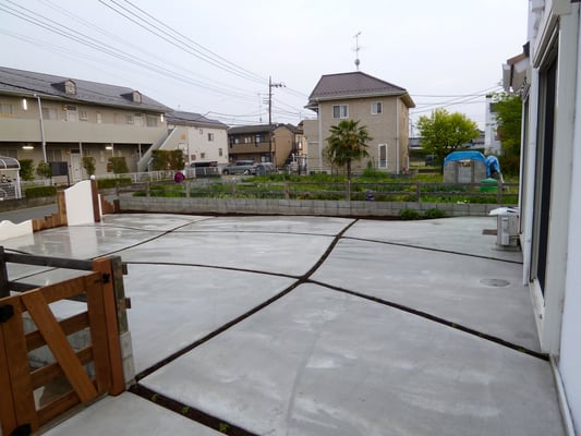 土間コンクリートも曲線目地で柔らかく 春日部市 外構リフォーム